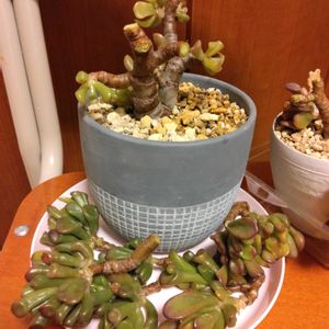 金のなる木の変種という事は 花も同じ様なのが咲くのでしょうか😌 温度管理が難しいかな 寒いので室内に入れてたらぶつかって 枝を折ってしまったので挿してみました😅