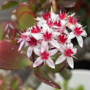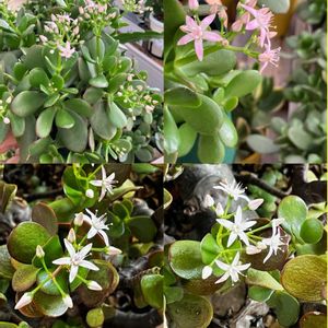 🍀🌻🪴💐🌹🌻🍀 🍀💗money tree(金のなる木)💗🍀 🌿金のなる木の花🌸が今見頃です 💐金のなる木の花言葉は(富) (一攫 千金) (幸運を招く)など縁起の良 い言葉が付けられています 💐金のなる木はベンケイソウ科属ク ラッスラ属の常緑性の多肉低木で 原産地は南アフリカです 💐英名はJade plant(ジェイドプラン ト)直訳するとヒスイの植物とも呼 ばれ、海外でも古くから富や繁栄 を象徴する植物として親しまれて きました 💐金のなる木は丈夫で育てやすく、 乾燥や寒さにも強いことから、昔 から家庭で親しまれてきた観葉植 物です 💐金のなる木は葉の内側に水分を蓄 える性質があるので頻繁に水やり する必要がなく管理が容易です 💐縁起が良いことから金運効果が 期待できる植物として人気です 💐(フチベンケイ・縁紅弁慶) (ナリ キンソウ・成金草)という和名で 古くから縁起物として知られて います 🍀🌻🪴💐🌹🌻🍀