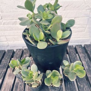 『金のなる木』 - クラッスラ属 - 夫が前の会社でもらってきた子を カットして✂️増殖中〜✨ 新芽も出てきています⤴︎ 寒さに弱いイメージですが のき下に置いて庭で育てています🌱 今のところ元気でいきいきと しています(*´꒳`*) 金運upするかなー⁈