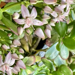 地植えの金のなる木が 咲き始めました🩷 先日の雪にも負けず❣ ありがとう❢🩷