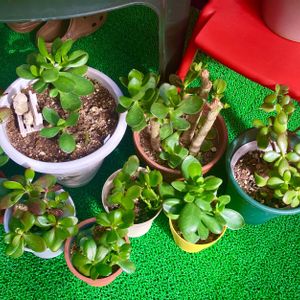 今日は晴れ間を見つけて 金のなる木の🌳 チビちゃん達 日向ぼっこをさせました 〜🌞🌝☀️〜 何処からか 気持ちイイー💓 と聞こえたような👂 聞こえないような⁉︎😄