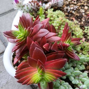 初めての寄せ 赤色を中心に寄せて見ました 火祭り(クラッスラ) 大和錦(エケベリア) 赫蓮(カランコエ) ブロンズ姫(グラプトペタルム) プロビフォリウム(セダム) なんかバラバラの属になってしまった💦💦