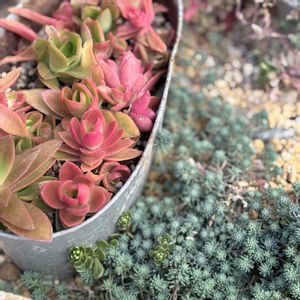 こんばんは⭐️ 久しぶりに暖かいので 多肉を仕立て直し🌵 寄せ植えとリメ缶に😊 🏷️毎月15日はいちごの日