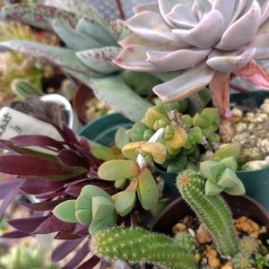 うちのヒモサボテン達。 数個は、黒ナマコの様な姿になってしまいましたが、他は元気に子株も出してきてます。 1枚目の神刀は、いつからだったかな〜、赤色斑点が出ました。