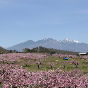 山梨県韮崎市 新府桃源郷 桃の花と山々🌸⛰️🗻 山の景色が好きなので、お花を撮る時も ついつい遠くの山を入れがちなワタシ☺️🤳🌸⛰️ 新府の桃畑は高台にあるので 山梨の名峰達が桃畑の背景に入ってくれて嬉しいです☺️ 残念ながら、南アルプスは雲がかかってしまい上手く撮れませんでしたが、八ヶ岳、茅ヶ岳はバッチリ👌 富士山は霞んでいましたが、なんとかコラボが撮れました🌸🗻 ①八ヶ岳 ②富士山 ③茅ヶ岳、金ヶ岳 ④雲でだいぶ隠れていますが 鳳凰三山 ⑤新府城跡から見た 八ヶ岳と新府桃源郷