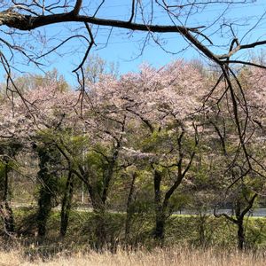 新府城跡に行って来た日の写真続き。 100メートルほど登った先に 新府城跡がありました。 散り始めていましたが、桜も綺麗に咲いていたり、かなり広く開けたスペースがありました。子供達が駆け回って遊べそうです、笑 跡地の奥に、八ヶ岳と桃畑が見渡せる場所もあり、高い場所に登った気持ち良さも味わえました✨⛰️🌸 この日は気温が高く、蒸し暑さもありかなり汗をかきましたが、城跡に来てみて良かったです☺️