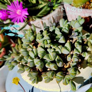 1月の碧魚連🅒🅗🅔🅒🅚🪄︎︎◝🤍 pic1⃣ 碧魚連 寒い時期の碧魚連さん絶好調٩(ˊᗜˋ*)وイェ-イ! 元気に新芽が出てきてます! 🏷トトの日 参加させていただきます(⋆ᴗ͈ˬᴗ͈)” pic2️⃣ ディスキディア・ミルネイ ミリオンハートに赤い葉っぱが?! と、おこた♪さんが言ってたので 見てみた👀✨ ミリオンハートにも薄っすら赤くなった葉っぱがあったけど、上手く写せなくて⤵⤵ わかりやすいのはミルネイの新葉❤ ここまで大きくなっても薄っすら赤い 夏にも赤い葉っぱが出た事あるので、気まぐれなのかしら🤔?! pic3️⃣ PLANTS NUTくん DESERT PLANTSさんにガチャやりに行ってきました✨ 5種類あって、グラウカだけ出なかった💦 _| ̄|○ il||li pic4️⃣5️⃣ セダム 姫笹 & クラッスラ・サルメントーサ 夏に消えた姫笹😓 昨日、ホムセンのお助けコーナーに萎びた姫笹を見付け、お連れした🚑 軽く水やりしたら…( ੭•͈ω•͈)੭💦🌱 ͛.* pic5️⃣ 水やりして9時間後 水を吸って葉が開いてきた( *˙0˙*)オォ… 姫笹の上に乗ってる1寸鉢はサルメントーサ これもシワがとれた🌱ピーン! 元気になれよ❣️ (っ`・ω・´)っフレーッ!フレーッ! 姫笹とサルメントーサは斑入り?! で、いいのかな… •́ω•̀)? 🏷斑入り見付け隊♪ 付けさせていただきます(⋆ᴗ͈ˬᴗ͈)”