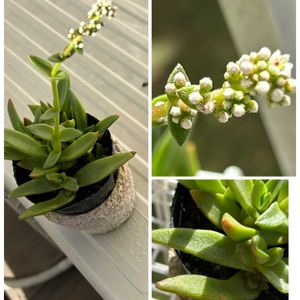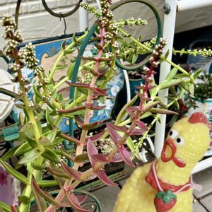①徒長しまくった赤鬼城 お花まで咲かせてます あまりの暴れぶりに チキン野郎もビックリ‼️ ②そんな暴れん坊を✂️しました お花は挿したら どうなるのでしょう⁉️ 予想つきませんが、せっかく咲いてるから 挿してみました😆 🏷️にぃさんの日 に参加させてください💓