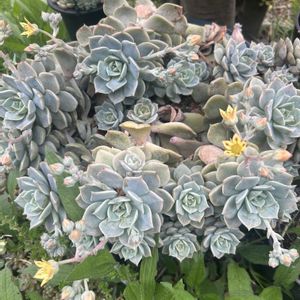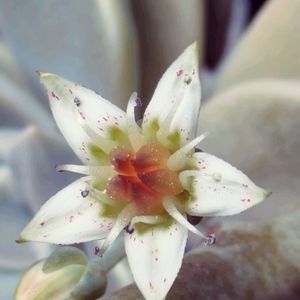 葉がロゼット状につく春秋生育型の多肉植物です。株元からランナーを出して子株をつけ、群生します。花を咲
