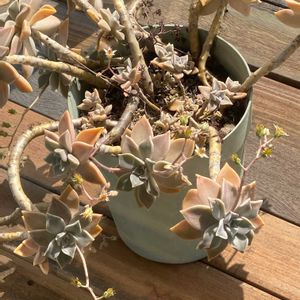 今日の写真は、我が家の最強多肉の白ボタンとおぼろ月になります。 ◇1枚目→スタンドカップ プランターの白ボタンたち ◇2.3枚目→踊り白ボタン ◇4.5枚目→おぼろ月たち いずれの白ボタンもおぼろ月も、ここ数年の酷暑を同じ場所で乗り越えてきています。 多肉たちがかなり増え、それぞれの苗が大きくなり、今では動かすことが出来ないこともあります。 今年の夏も、無事に乗り越えられますよう、願うばかりです🍀