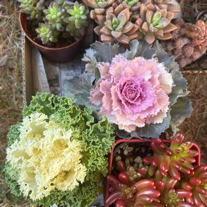 大晦日だって多肉狩り😂 お正月らしい花の寄せ植えをしたくて葉牡丹を探してHCをハシゴ。 葉牡丹50円だった🤭 ブロンズ姫と虹の玉の誘惑には勝てず😂
