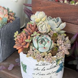 多肉寄せ植え☆…☆…☆…☆… バランスが悪いのを どう手直したらいいものか🤔 どの子も元気だと カットする勇気がなくて😅