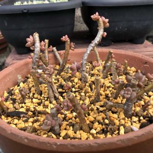 今日は寒い1日でした⛅ 多肉ちゃん達は寒くないかなぁ💦 葉挿しでよく増えるので白牡丹さんがあちこちにいますが、この子だけピンク色😍🩷 ほかの子はグレーピンクだったりグリーンだったり色々です🤭 2枚目pic ピンクルルビーの葉挿しの中からひょっこり白牡丹さん❣️ 大きくなって最近目立ってきました🤭