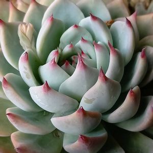 先端がほんのり赤く可愛らしい葉を持つ多肉植物。