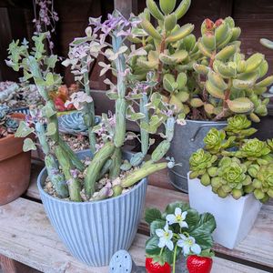 毎月15日はいちごの日 ド真ん中の日 蕾応援団 に参加させていただきます(ꕤ ॑꒳ ॑*)ノ 1、2、3枚目 ハゲハゲだった、七宝樹錦の葉っぱが沢山出ました🌿.∘少しピンク色🩷 4枚目 10月から咲き始めた熊童子のお花、寒くてまだ蕾のままです(๑و•̀Δ•́)وガンバ 5枚目 七福神も頑張ってます୧( ˙ᵕ˙ )୨ 今日は春が来たみたいでしたね🌸🌷🐝 もう、雪積もらないといいな(*´ー`*人)