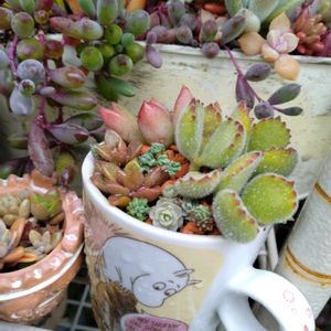 先日カットしたハロウィンさんの親株が色づいてきました😆 去年はどうだったかな? お、思い出せない…😱 2枚目 3年前にお迎えした小さい熊童子さん(左下pic) なかなか育たないので花の鉢に入れておいたら、可愛いお手々がパンパンになってますΣ(゚∀゚ノ)ノキャー 別物になってます〰️🤣