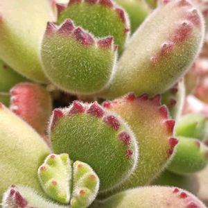 真っ白でフワフワの毛で覆われた可愛い多肉植物。発根や生育に時間がかかるが人気品種。