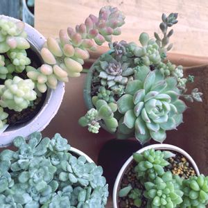 多肉ちゃんの寄せ植えにチャレンジしてみた❣️✨️ 1、2枚目が私ので3、4枚目が母にあげるやつ☺️ 昨日母と家の近くを散歩していたら、大きなお屋敷にたくさんの植物と多肉ちゃんたちを見つけて、小声でキャーキャー言いながら見ていたら、お庭におば様を発見!👀 コミュ力高めの母が「少し見てもいいですか?」と聞いたところ、快くお庭に入れて頂いて… 多肉ちゃんの色々なお話を聞いていたら、「これ、増えすぎちゃったからあげる」といってたくさんの多肉ちゃんたちを頂きました❣️😭💗 そこら中にある鉢からブチッ!ブチッ!とちぎりとって、どうぞ😊と…😍 もう感動しすぎちゃって、何度も何度も頭を下げてお礼を言って、お別れをしました🤭 今度またお会いできたら、お礼に何か渡そうね〜と母と話しております😊 素敵な出会いに感謝!🙇🏻♀️💗 画像の子達はどの種類かはあまり分かってないのですが…自力で調べたものをタグにつけておきます🏷𓈒𓏸︎ もしこれ違うよ!これはこの種類じゃない?みたいなのがあれば、コメントで教えて下さると嬉しいです😭✨