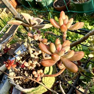 梅の香りが漂う2月になりました。 今朝の写真は、カットしようか迷いながら、ここまで育ってくれた白ボタンたちになります。 ◇1.2枚目→白ボタン鉢 ◇3枚目→虹の玉のハンギング ◇4枚目→完全放置の乙女心 ◇5枚目→完全放置の姫秋麗 今日は、気温自体は高くありませんが(現在6度)、おひさまの光がとても強く、体感気温(10度とのこと🥰)はとても暖かく感じます。 紫外線をとても強く感じ、日焼け止めだけでは対抗出来そうにないので、久しぶりに麦わら帽子をかぶりました。 16年目の麦わら帽子。 とっても大切に使用してきましたが、昨夏、少しだけほつれが出始めました。 もう一年頑張ってもらうか、全く同じ帽子をお迎えするか、こちらも迷っています。 今夜から数日間、冷え込みは少し収まりそうなので、冬季にしてはかなりしっかりめにお水やりを行い、リキダス入りのお水も与えました。 1.2枚目は、数年前に作りました白ボタン鉢になります。 通常、階段の脇に置いてあるので、茎がびっくりするほど伸びて育ってくれました。 ここまでちぎれずによく頑張ってくれたな~と思います。 3.4.5枚目も、我が家では年季の入った数年物の多肉たちになります。 耐寒性の強い品種であれば、しっかりと根が張っていることにより、完全放置でも冬を越すことができます。 (※我が家の外部環境においてです) 自由気ままに育つ多肉たち🌱 いつまでも見続けることが出来ます。