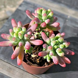 おはようございます😃 暖かさがほっこりして植物たちも 嬉しそう?☺️🎵 春を感じる暖かさ☘️ 福だるまさん↑お粉がはげてますが、キャンディーのようなまるくつやのある葉っぱが好き😊小さな芽もたくさん出て来てます 😍 乙女心さんも赤いポッチがなんてキュート🩷 寄せ植えの多肉さんたちもお日様が心地良さそう😊