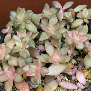 ぷっくりした肉厚で光沢のある葉と、季節に毎の色彩の変化が特徴的な多肉植物です。夏場は緑色ですが、秋〜
