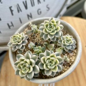 錦の日に参加いたします。 1️⃣ピンクプリティ錦 葉挿しと子株が可愛くなってます😆 私はピンクプリティとは相性がよいみたいです😊普通のピンクプリティより錦は小ぶりです。 2️⃣オーロラ ようやく綺麗になりましたが、現在少しくすんできました。これは1ヶ月前ほどのものです。 どちらも大好きなので冬越し無事にできますように😅