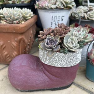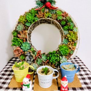 ❄️Merry Christmas🎄❄️ 今朝の写真は、夏の終わりに作りましたクリスマスブーツの寄せ植えになります。 大切な鉢で、今年で4回目の寄せ植えになります✨ ◇1.2枚目→現在の様子 ◇3枚目→薄化粧 ◇4枚目→レティジア ◇5枚目→乙女心と虹の玉 寒さに当たり、ブーツ鉢周りの多肉たちもパリッとしてきました。 今年のクリスマスにはどの苗が良いかな、と葉挿し育ちのブロンズ姫やラブリーローズ、子株育ちのパールフォンニュルンベルグを選んでみました。 3.4.5枚目は、クリスマスカラーに紅葉し始めている多肉たちを選んでみました🪅 さて、自分へのクリスマス🎅 毎年恒例、家族には宣言していますが、この年末年始、テレ東の路線バス乗り継ぎ旅9時間&箱根駅伝を観るために、テレビ、もしくはPCの前に居座ることです。 長すぎるので、時間差になるかもしれませんが、私の元気になる『源』 なので、欠かせません。 さて、今晩は、サンタさんが来てくれる準備にいそしみます🎁 関東は冷たい雨の一日になりそうですが、どうぞ、温かなクリスマスイブをお過ごしください🎄