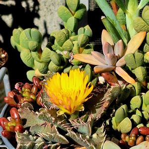 こんばんは😃🌃🎍🐴 🏷️群生の日 ※いつものホームセンターのお花屋さんで見掛けた八重咲きユリ… ステキな八重咲きユリに思わず👀📷✨ ※姫秀麗が押しくらまんじゅう笑 虹の玉が紅葉🍁して可愛い💠 サニコさんに頂いたカゴ寄せ植え ブロック桜🌸、ブロック🐦サンも一緒に…仲良く🎵 ※レインドロップさんがモリモリ… ピータ-ラビット🐰サンも一緒に ※ikuraさんのリトープスMIX寄せ植えとってもキュート… お気に入りです😌💓 繋がりに感謝です☺