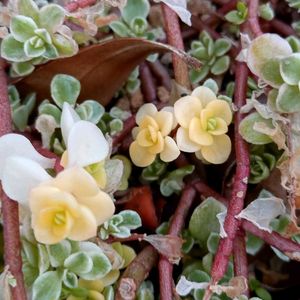 今日は暖かいので、葉挿しや小さなつぶつぶさんたちにお水やりをしました✨ pic1 秋にホムセンからお迎えの丸葉万年草さんが植え替えてからとても増えて、紅葉もして来て可愛くなりました✨ pic2 ずっと植え替えてないブロウメアナさんは何時も屋根なしなので茎が伸びる事なくギュッとしてます💖 pic3 こちらは立水栓のブロウメアナさんとグリーンネックレスさんのつぶつぶコンビ♪ グリネさんは地面につきそう💦 ブロウメアナさんは寒くなる頃には小さく刈り込みます😊 pic4 懲りずに秋にホムセンから連れて来たリトルミッシーさんは、ピンクのステッチが見えて来ました💖 一年草だと思って楽しみます♪ 🏷️つぶつぶの日 参加させていただきます✨ pic5 可愛くなる子が多いこの季節ですが、白絹姫さんはモフモフの葉を枯らして休眠に入りました💤 春にまた会いましょうね😊
