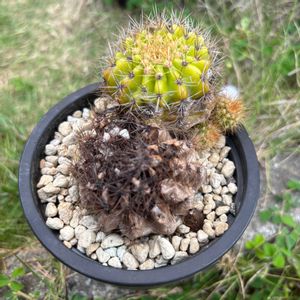 昨日は良い天気で暑いぐらいだったのに今日は朝から雨☔で寒いなぁ💦 昨日 寄せ途中だった寄せ植えを朝完成させました☺️ ダイソーで可愛いサボテンをGETしたので先日のイベントでお迎えしたチビ苗とうちの葉挿しっ子や育ちの悪い寄せ植えを解体した苗などを使ってもりもりの寄せ植え🥰 紅葉が残っててカラフルで可愛いかも〜🤭 自己満です😅 3枚目 サボテンにちゃんと名前ついていたので忘れないように記録📝 多肉植物の箱庭の紅稚児が花盛りで可愛い🥰 バレンタインの時の寄せ植えこの前も載せたけどセダムがモリモリになってきたのでエケが埋もれる前に📸した後少しだけカットして整えました😊ちょっとハート❤に見えるかな? カットしたセダムは他の寄せ植えの隙間が出来たところに植えました😊