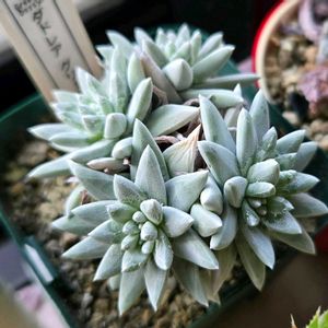 葉がロゼット状につく春秋生育型の多肉植物です。株の状態がよければ花を咲かせることがあります。葉に白い