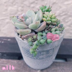 🩷 小さな寄せ植え 🩷 作家さんのミニセメント鉢🎶 寄せ直しました°。⋆⸜(* ॑꒳ ॑* )⸝ 🌟⋆͛