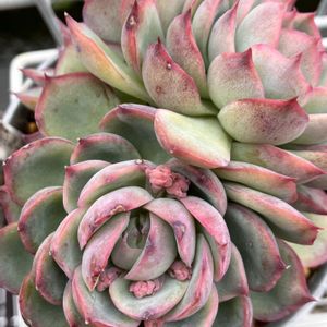 パキフィツム 千代田の松 葉先がピンクがかってウォーターマークも✨ 😮え〜〜こんな可愛くなるの⁉️💕 って衝撃で家に居るはずなのに連れ帰ってしまいました🎶 他にも未だ本当の美しさに気付けていない多肉があるのでは?🤔と気になっちゃってホームセンター通いが止まりません🍀