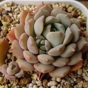 葉がロゼット状につく春秋生育型の多肉植物です。株の状態がよければ花を咲かせることがあります。葉に白い