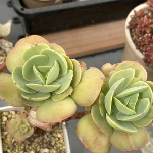 エケベリアの中でも観賞価値が高いといわれる美しい品種。ライトグリーンの葉先がピンク色に美しく染まりま