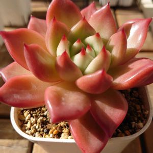 今日は朝から晴天☀ お日様に当たっている多肉ちゃん達が嬉しそう😆💕 ピンクハニーさんは先月より色がさめてきて中心が黄緑色になってきました🤗🩷 2枚目pic 葉挿しの月美人ちゃん❣️ 葉挿しで成功したのはこの子だけ💦 やっとここまで大きくなって嬉しいです🥰 新葉も出てきて小さいながらも存在感あります😆🤩 3枚目pic 親株の月美人さん✨️ 新葉が出てきたけどピンク色😍🩷 可愛すぎ〰️(親バカw)