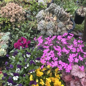 ①マーガレット アプリコットジャム🍑 ②マーガレット ソレイユ🌞 ③株分けしてもらったバーベナ💜が咲き始めました。 後ろのシクラメン🔴がずっと綺麗なのが不思議〜。 ④見えにくいけど🤣ノースポール、ポピーの寄せ植え。 ポピーの葉が最強説💦。 ⑤ハンギングのミセバヤも元気出てきたよ🙆。 だけどミセバヤってポロポロ取れるの苦手💦