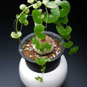 冬越しの準備でバラの培養土を求めに行ったつもりが… 以前から気になっていた亀甲竜に目が止まり…お迎えしてしまいました チョロリンと伸びた蔓が可愛いぃ 育て方も勉強しないと