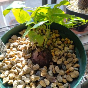 葉が落ちた亀甲竜を半額で購入😆 室内栽培で、なんとか新葉が出ました☺️