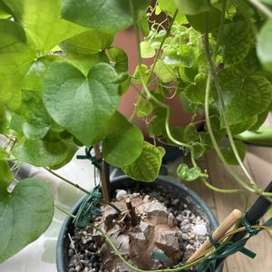 スラックスがキツイ…(;´Д`) 亀甲竜 蔓を切りました。 枯れるまで待とうか悩みましたが、バッサリと。 支柱をどうするか…🤔