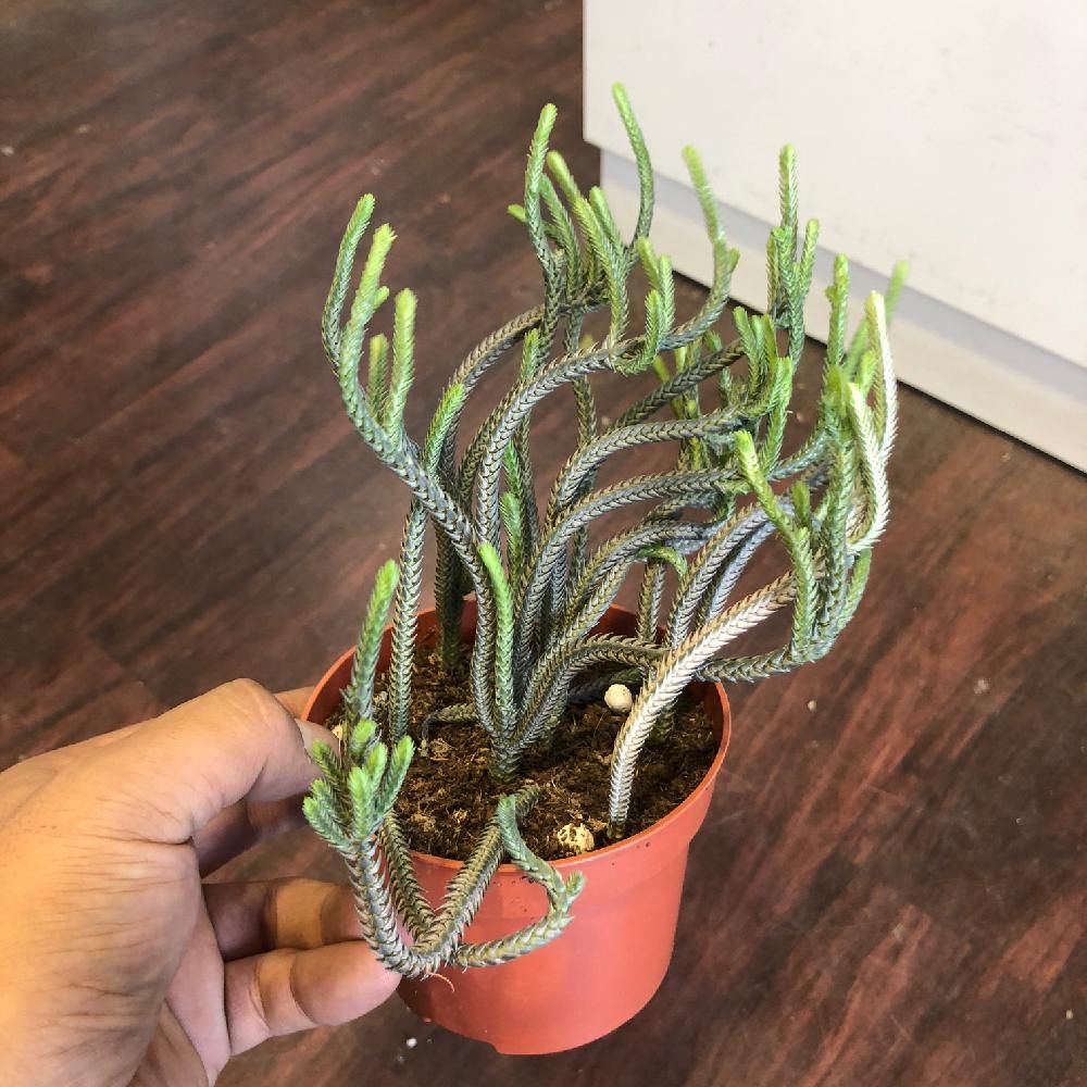 ベンケイソウ科クラッスラ属に分類される多肉植物は数多くありますが、その中に、一見針葉樹の葉っぱに見える、緑色の葉っぱがびっしりと規則正しく並んで棒状に伸びていく「青鎖竜」があります。「クラッスラ・ラプソディインピンク」は青鎖竜の枝変わり品種で、先端の方がピンク色にきれいに染まり、「青鎖竜錦」として流通していることもあります。
