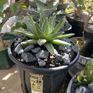 実生:笹の雪直紋タイプ アガベマイトにやられ成長点残しカットして復活したと思われる。 なんか新葉が短いの。