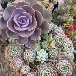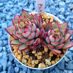 今朝の写真は、2年前の3月に葉挿しからスタートしたオウンスローのその後になります。 ◇1枚目→現在の様子 ◇2枚目→1年3ヶ月前に葉挿し育ちを鉢上げした様子(2024.11.16📷) ◇3枚目→おおよそ2年前に葉挿しし始めたときの様子(2024.03.18📷) ◇4枚目→2枚目の鉢上げ前の様子 2年前の春に親苗を胴切りし、沢山の葉を挿したオウンスロー。 今では、胴切り後からの子株育ちや他の葉挿し育ち組もとても大きく育っています🌱 ご近所さんへ旅立っていった苗もあります。 たったひとつの親苗から世界が広がっていくのも、多肉ならではなのだと感じます✨✨ こちらの鉢は、庭の芝生の上に直置きしているもので、冬期の防寒は今期は10日間程度、夜間に寒冷紗を掛けただけで過ごすことが出来ました。 同じ鉢内の左上にあります子株育ちのダスティーローズと共に、我が家ではオウンスローも耐寒性が割と強い品種として認識しております。 現在、真ん中にライラックミストがひとつ育っていますが、どうしてここで育っているのか、いつから居るのか定かではありません。 ライラックミストも、葉挿し率はほぼ100%に近く、耐寒性/耐暑性の強い品種なので、同じ鉢で生き残ってこれたのかもしれません。 現在、ひとつひとつの苗がかなり大きくなりましたので、春に仕立て直しをしようかな、と考え中です。 今年の冬は冬期オリンピック、そして、更なる多肉の可愛さから目が離せません🥰