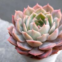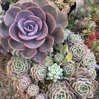 アエオニウムの中でもこの種は、強い光を浴びると葉が緑から紅桃色や紫色になります。ロゼットの大きさは1