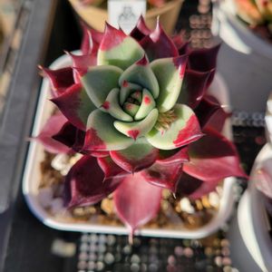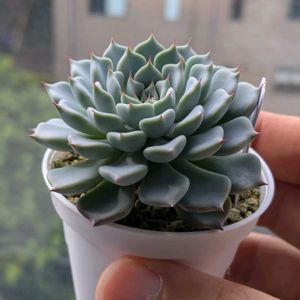 蒸し暑さがすごい日々…。 水やりを我慢しつつ、ジュレた葉がないか探しています。 沙羅姫牡丹(右) ウチの沙羅姫牡丹は、葉の外側だけ染まるタイプ。 それはそれでいいんですけど、「ガッツリ染まる」タイプもいつか欲しいと思っています😌 キスミー(左) リラシナ✕サラヒメ。 名前を口に出すのはちょっと恥ずかしいですが、ウチの沙羅姫牡丹よりも「ガッツリ染まる」タイプ。 どんどん大きくなってきています😅 春、近くのホームセンターに入荷していたのですが、全部売れ残って徒長していました。 すごくいい苗なので、もったいない…。 どちらもこれから染まるのが楽しみです👍️