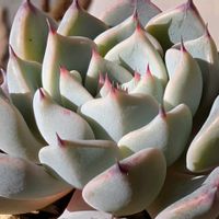 葉がロゼット状につく春秋生育型の多肉植物です。株元からランナーを出して子株をつけ、群生します。花を咲