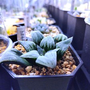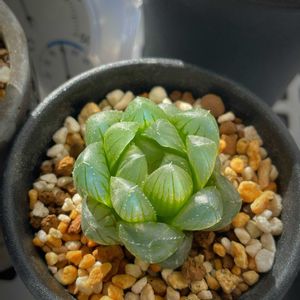 ハオルチアの藍光系オブツーサです。 チャームポイントは窓の青光りです。