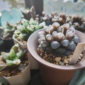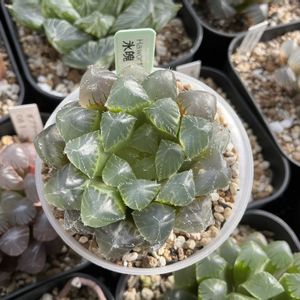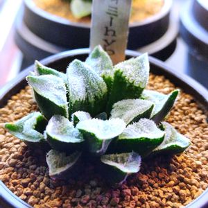 ウィミーハイブリッド。 まずウィミーってなんぞ? •́ω•̀)? と思って調べたら、白帝城や銀帝城みたいに三角の窓に、さらに白い毛というか細かい棘が生えてるタイプの子の事なんですね。 ハオルチアは種類多すぎてさらにそっくりさん多すぎて 𖦹 ‧̮ 𖦹×ࠏ×>﹏<訳わかんないよ(இдஇ`。)