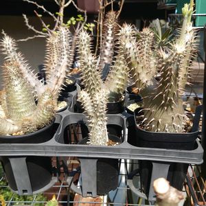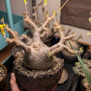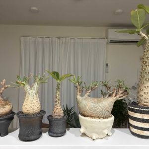 1週間先まで最低気温が8度を下回らないみたいなので、パキポディウムを屋外管理に変更。 ウィンゾリーとアンボンゲンセは少し不安なので、まだ屋内管理のままですが、そのほかの株は鉢増ししたりして今シーズンの準備を整えました。 この冬越しで、ホロンベンセ一株、エニグマチカム一株が腐ってしまい、少しトレーが寂しくなったので、新たにマカイエンセを一株お迎えしちゃいました(奥さまには内緒🤫) 因みに花芽を伸ばしてるのは1枚目も2枚目もグラキリス。 2枚目のブレビカウレも花盛りですが、鉢増ししたので花を落としちゃう…かも🤔 1枚目 エブレネウム2(自家実生) エニグマチカム2(自家実生) グラキリス3(自家実生) ホロンベンセ2(自家実生) マカイエンセ1 デンシフローラム1(自家実生) 2枚目 レウコキサンツム3(自家実生) グラキリス1 ブレビカウレ1 今年は種まきはお休み…と言いつつ、グラキリス同士で種を取ることが出来れば…でも去年失敗したから自信はありません🥹