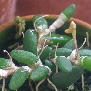 『デンドロビウム リチェナストラム』 ぷっくり卵の様な葉の小さな蘭 1つだけですが蕾が付きました 咲くのが楽しみです 最近ハマっている小さな蘭達の1つですが、このリチェナストラムは乾燥、低温、高温、強光にも強いと言う、丈夫な蘭だそうです それでも枯らしそうな私😅ですが… 今日のオマケ 水浴び後の『センダイムシクイ』 この近くでコマドリが囀っているも姿は見れず… コマドリさんには嫌われ中です😅